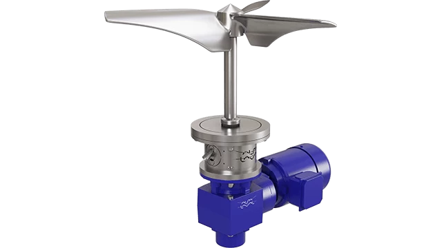 The Alfa Laval ALB bottom-mounted agitator has an electrical drive motor that transmits the energy required for mixing and blending, either directly or via a gearbox, to the agitator shaft.