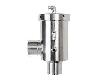 The Alfa Laval SB Pressure Exhaust Valve is a pneumatic regulating valve that automatically releases pressure in a hygienic process tank when it exceeds the set pressure.